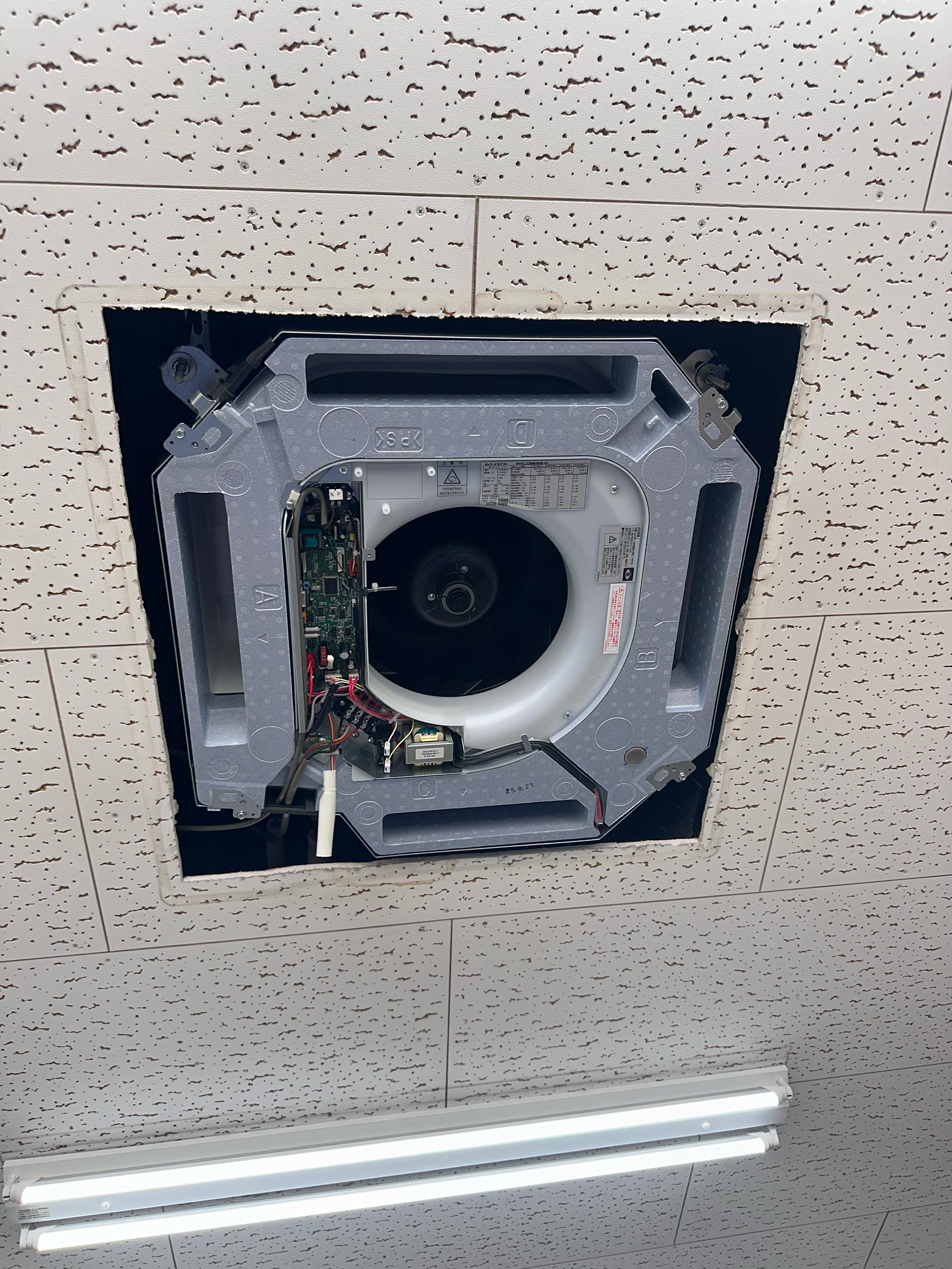 大阪府貝塚市 会社応接室 天埋4方向 パッケージエアコン交換工事